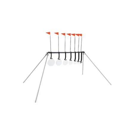 7 Powder coated targets – (8" 7" 6" 5" 4" 3" 2"). Targets angles to the ground. Portable design.