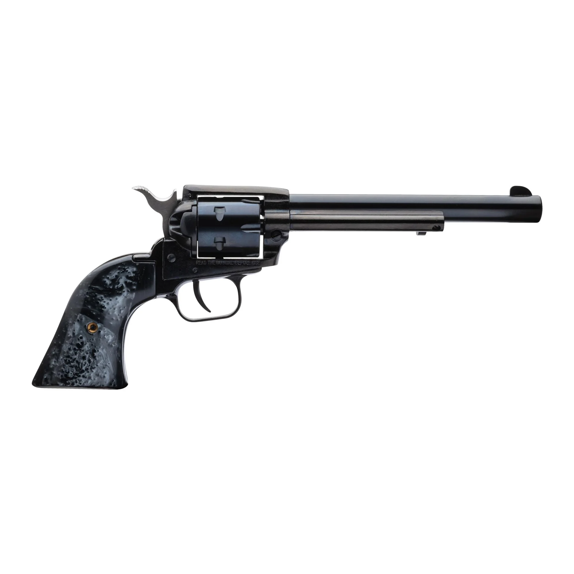 The Sidekick shows off an old school cowboy personality with a classic look and feel. We added features such as a swing-out cylinder release incorporated into the old school ejection rod, a smooth Cerakote finish, checkered polymer grip. Specifications: Caliber: 22LRAction: Single & Double.Grips: Checkered glass filled Nylon.Capacity: 9 rounds.Front Sight: Blade.Rear Sight: Integral.Barrel length: 4.5”.Overall Length: 9.875”.Frame & Handle Material: Zinc.Frame & Handle Finish: Black Cerakote.Weight: 32.5 oz.Twist:1:16 RH.Grooves: 6